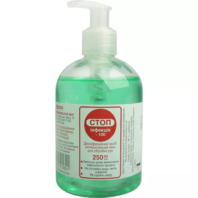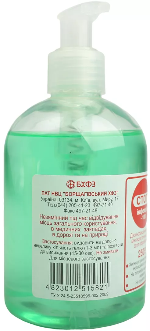 Стопінфекція-100 антисептик гель для обробки рук флакон 250 мл, Борщагівський ХФЗ