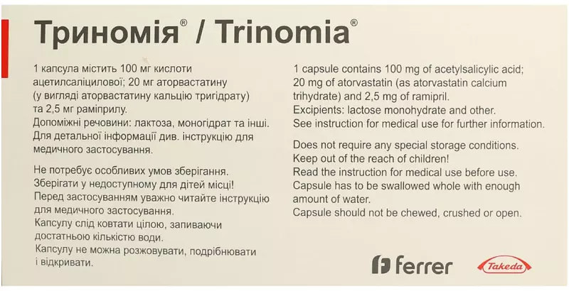 Триномія капсули тверді 100 мг/20 мг/2,5 мг №28, Феррер Інтернасіональ