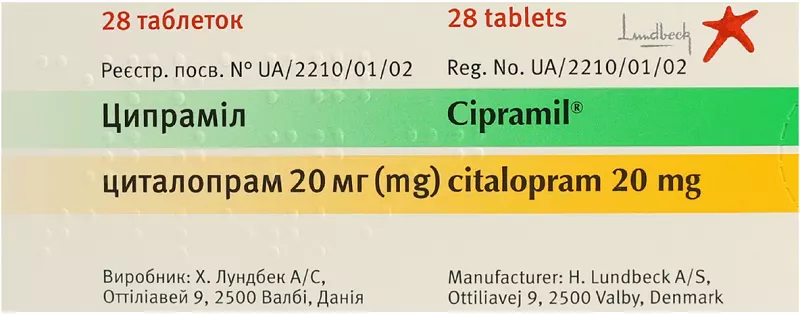 Ципраміл таблетки вкриті оболонкою 20 мг №28, Х. Лундбек