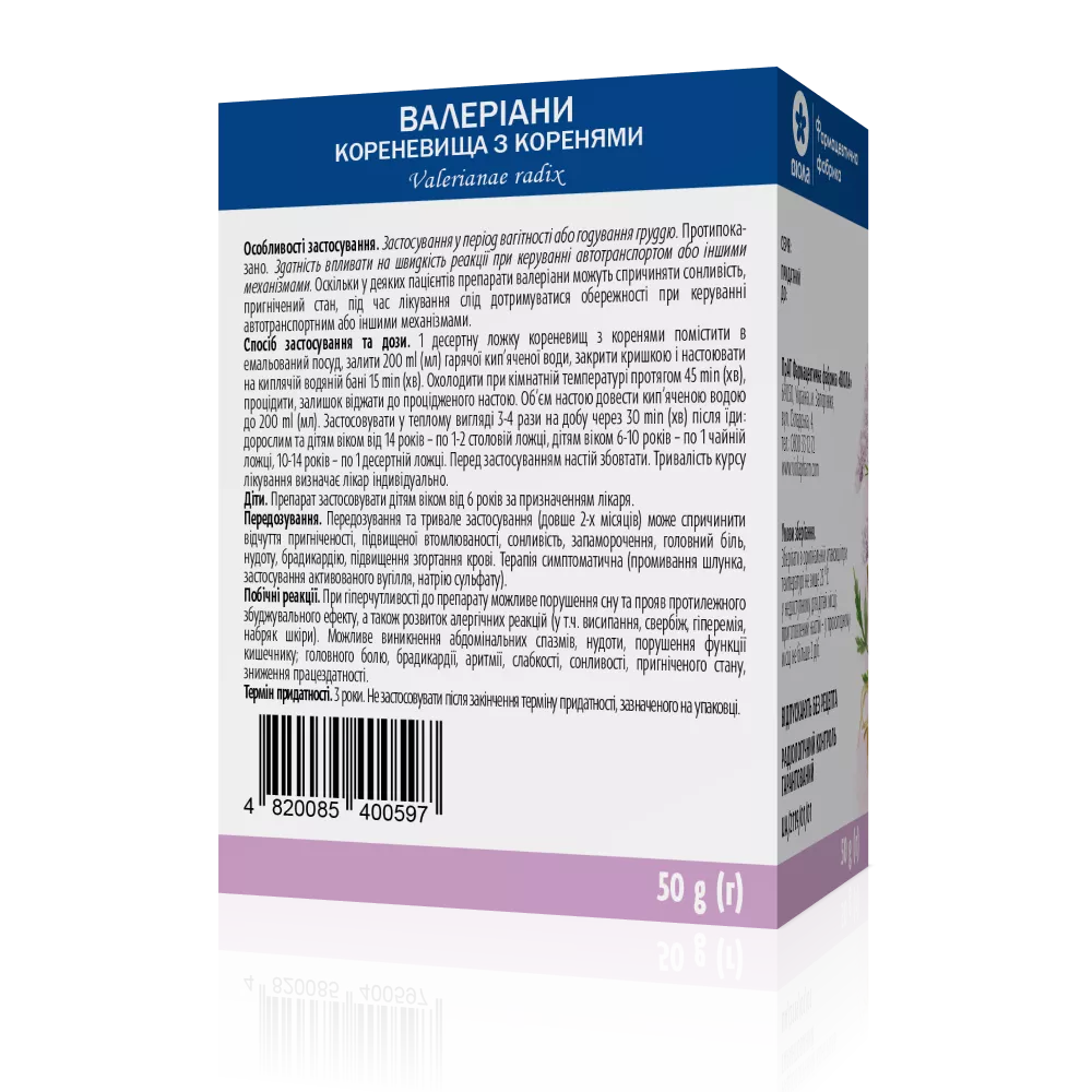 Інструкція для Валеріани кореневища з коренями пачка 50 г Роздрукувати