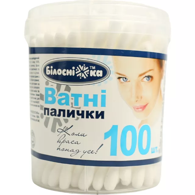- Ватні палички ТМ «Білосніжка» - це палички високої якості, їх зручно використовувати для нанесення тіней, гігієнічних процедур і медичних маніпуляцій.