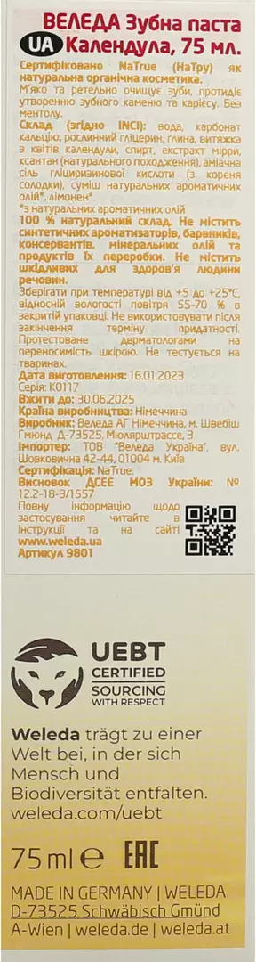 Веледа (Weleda) Календула зубна паста 75 мл, Weleda