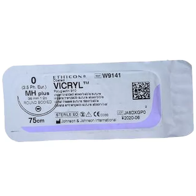 Шовний матеріал хірургічний Вікрил р. USP 0 (3,5), що розсмоктується, довжина 75 см, голка колюча 36 мм, 1/2 кола №1 W9141