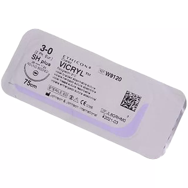 Вікрил 3/0 фіолетовий, колюча модифікована голка 26 мм, довжина 75 см, Етікон