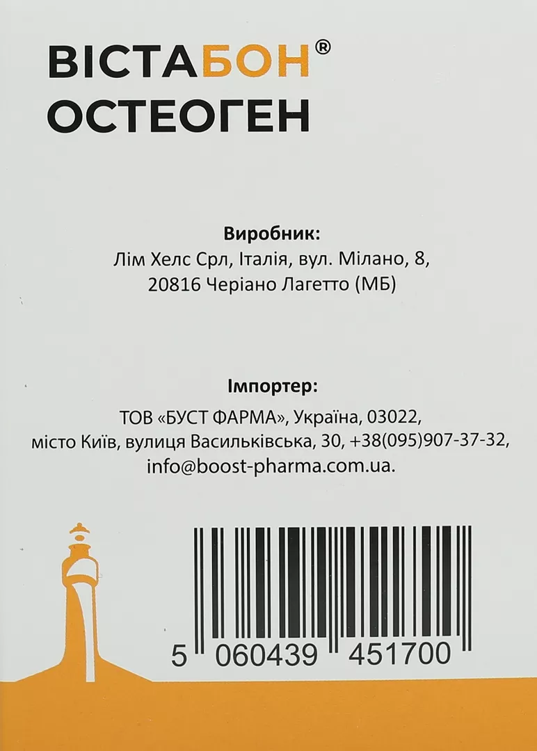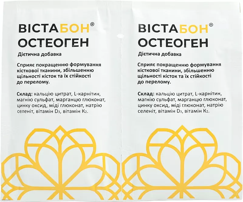 Дієтична добавка ВІСТАБОН® ОСТЕОГЕН містить збалансований комплекс речовин, які необхідні для процесів мінералізації кісток, підтримки їх міцності та стійкості до переломів.