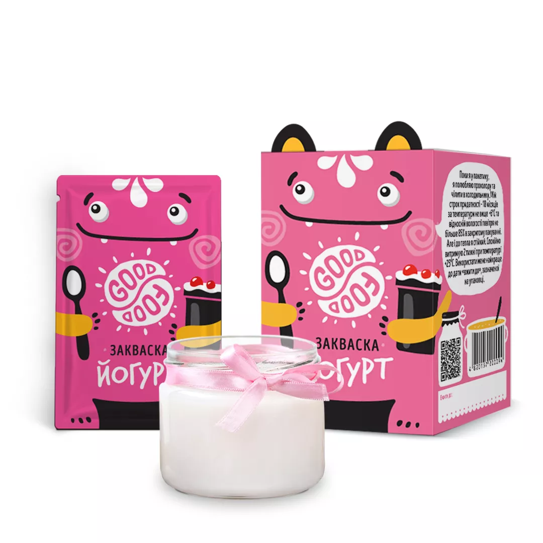Легко готувати. Домашній йогурт GOOD FOOD дуже просто приготувати. Завдяки високій якості живих бактерій, що входять до цієї закваски, йогурт легко готується на будь-якому молоці. Навіть якщо вам потрапило молоко низької якості, живі бактерії в процесі ферментування молока нейтралізують негативні властивості такого молока.
