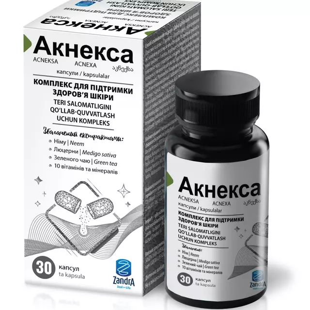 Акнекса – это средство, которое относится к группе препаратов БАДы для улучшения состояния кожи. Оно способствует нормализации кожного покрова, улучшению метаболических и обменных процессов в нем, нормализует чрезмерную выработку себума и восстанавливает кожный барьер благодаря своему антиоксидантному и противовоспалительному действию. Средство обладает свойством уменьшать оксидативный стресс, стабилизировать гормональный дисбаланс и поддерживать баланс кожной микрофлоры, что важно для предотвращения возникновения акне и других кожных проблем.