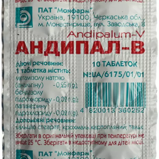 Описание препарата Андипал В на этой странице – носит информационный характер и является упрощенной авторской версией сайта https://apteka.net.ua/ru. Целью размещения данной информации является ознакомление посетителя сайта с услугами, продуктами, информацией и другими материалами сети аптек «Бажаємо здоров'я».