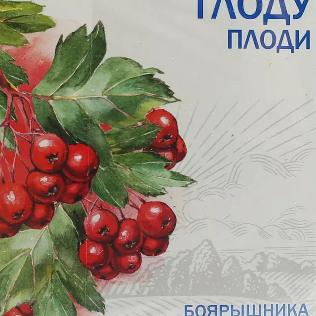 - плоды боярышника – упаковки по 50, 100 г (целые или измельченные плоды от желто-оранжевого и буровато-красного до темно-бурого или черного цвета, иногда с беловатым налетом);