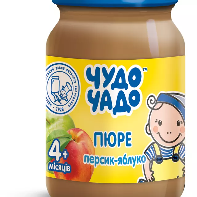 Пюре фруктовое Чудо-Чадо персик-яблоко с сахаром с 4 месяцев 170 г | 28.22 ₴ |