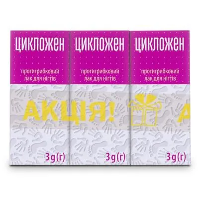 | Цикложен лак для ногтей флакон 3 г 2+1 (акционный набор) | 1382.5 ₴ |