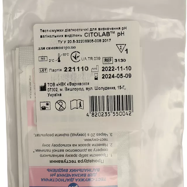 Тест-полоска Цитолаб (CITOLAB) для определения рН вагинальных выделений 1 шт | 105 ₴ |