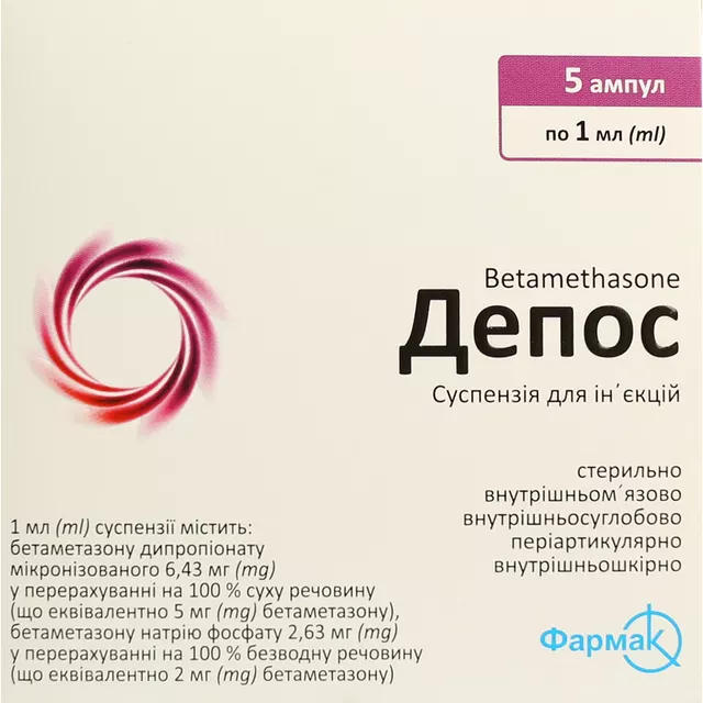 Лекарство Депос – раствор для инъекций на основе бетаметазона, который относится к кортикостероидам системного применения. Спектр применения препарата очень широкий. Действующее вещество (бетаметазон) обладает следующими фармакологическими свойствами: