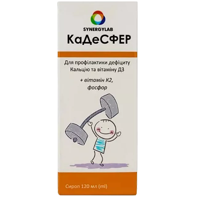 Сироп Кадесфер назначается для профилактики рахита, при задержке прорезывания зубов у детей, чтобы восполнить дефициты кальция и витамина D3. Средство эффективно в комплексной терапии искривлений позвоночника (кифоза, сколиоза, лордоза), а также во всех случаях, когда наблюдается плохое усвоение, снижена абсорбция или увеличена потребность организма в кальции и витамине D3. Перед применением препарата Кадесфер, который не является лекарственным средством, обязательно проконсультируйтесь с врачом относительно целесообразности терапии. Самолечение может быть вредным для вашего здоровья.