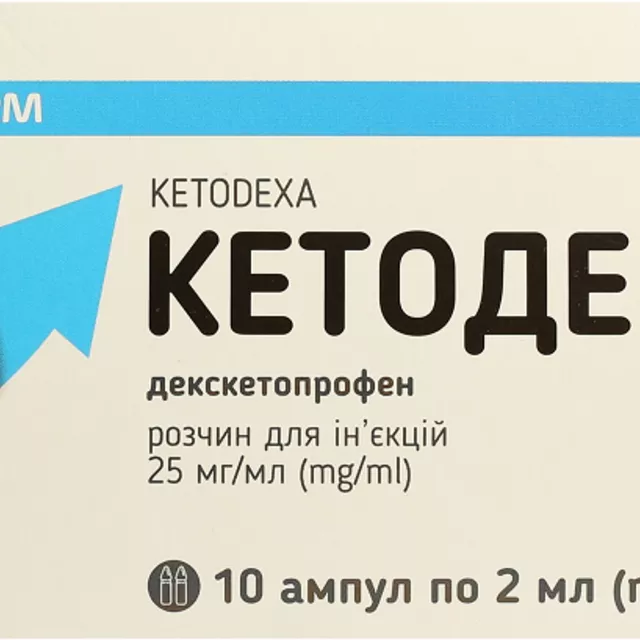- Раствор для инъекций в ампулах по 2 мл. В одном мл препарата содержится 25 мг декскетопрофена. Каждая упаковка имеет по 10 ампул.