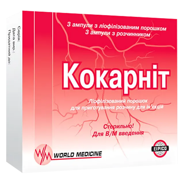 | Кокарнит лиофилизат для раствора для инъекций флакон+ампула с растворителем 2 мл №3 | 420 ₴ |