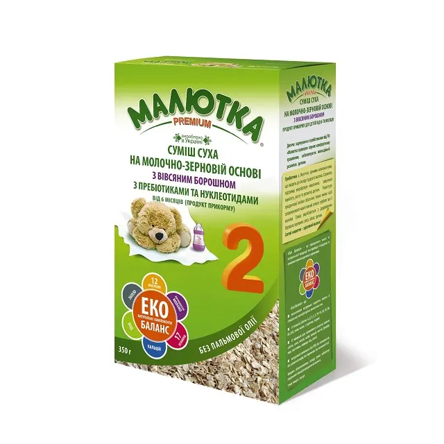 | Смесь молочно-зерновая сухая Малютка Премиум-2 с овсяной мукой с 6 месяцев 300 г | 116.5 ₴ |