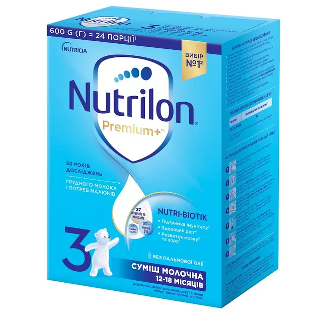 Смесь молочная Нутрилон 3 (Nutrilon) Премиум+ с 12-18 месяцев 600 г | 525 ₴ |