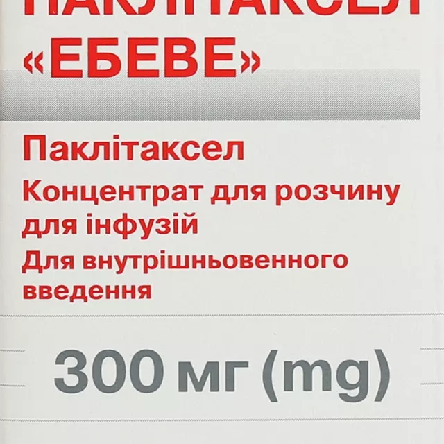 | Паклитаксел "Эбеве" концентрат для раствора для инфузий 6 мг/мл флакон 50 мл (300 мг) №1 | 3483.5 ₴ |
