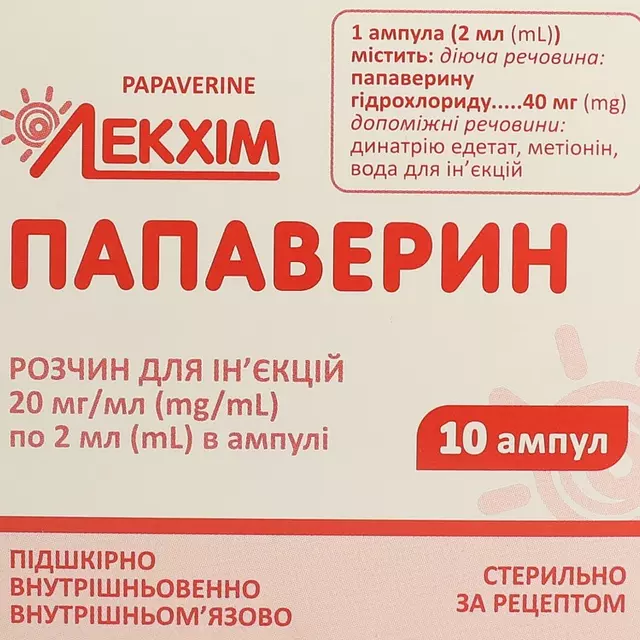 | Папаверин раствор для инъекций 2% ампулы 2 мл №10 | 107 ₴ |
