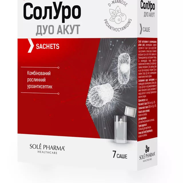 Описание препарата СолУро Дуо на этой странице – носит информационный характер и является упрощенной авторской версией сайта https://apteka.net.ua/ru. Целью размещения данной информации является ознакомление посетителя сайта с услугами, продуктами, информацией и другими материалами сети аптек «Бажаємо здоров'я».
