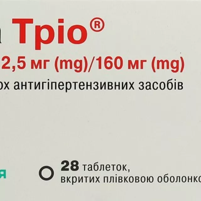 | Тиара Трио таблетки покрытые оболочкой 5 мг/12,5 мг/160 мг №84 | 709 ₴ |