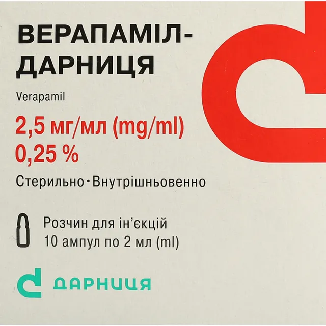 | Верапамил-Дарница раствор для инъекций 2,5 мг/мл ампула 2 мл №10 | 148 ₴ |