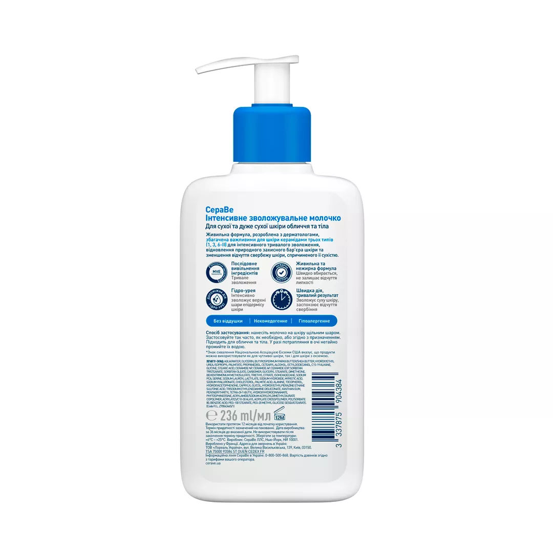 СераВе (СеraVe) молочко интенсивное увлажняющее для лица и тела с 5% гидро-уреи для сухой и очень сухой кожи 236 мл, Cosmetic Active Internationale