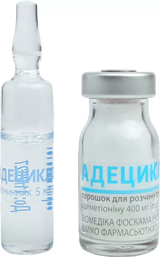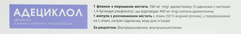 1 флакон з порошком містить 760 мг адеметіоніну (S-аденозил-L-метіонін 1,4-бутанди-сульфонату), що відповідає 400 мг катіона адеметіоніну;