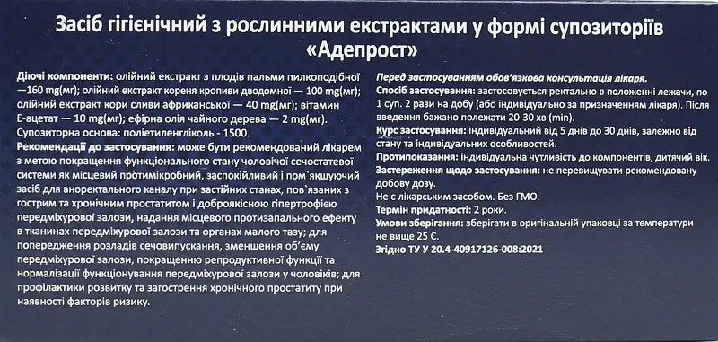 Засіб гігієнічний у формі супозиторіїв «Адепрост»