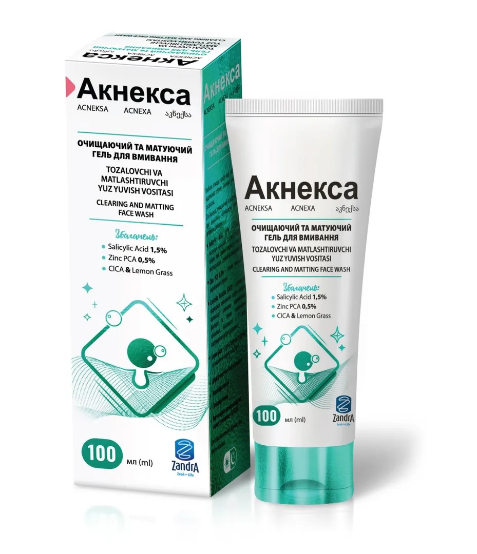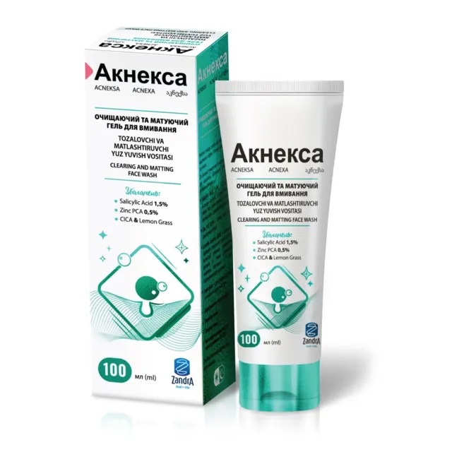АКНЕКСА,    ОЧИЩАЮЧИЙ ТА МАТУЮЧИЙ ГЕЛЬ ДЛЯ ВМИВАННЯ глибоко очищує шкіру від забруднень та надлишків себуму. Залишає шкіру чистою та свіжою.