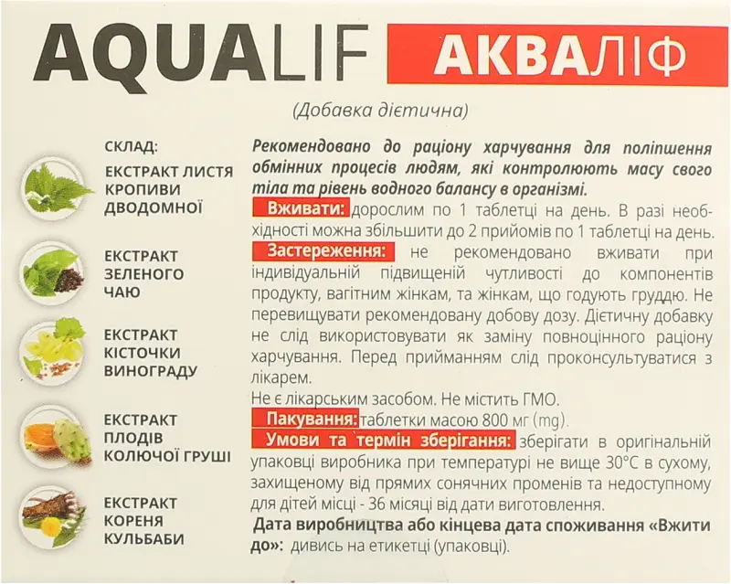 Аквалиф таблетки 800 мг №30, Shenzhen Hongsen Biology