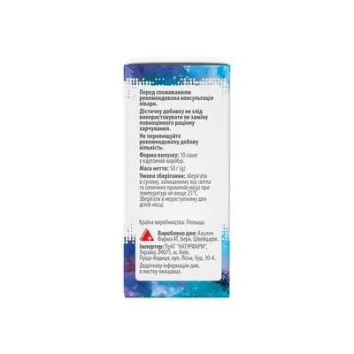 Спосіб застосуванняДітям від 12 років – 1 саше на добу, дорослим – 2 саше на добу. Вміст пакетику розчинити в 150 мл (ml) теплої води (не окріп) та приймати після прийому їжі.