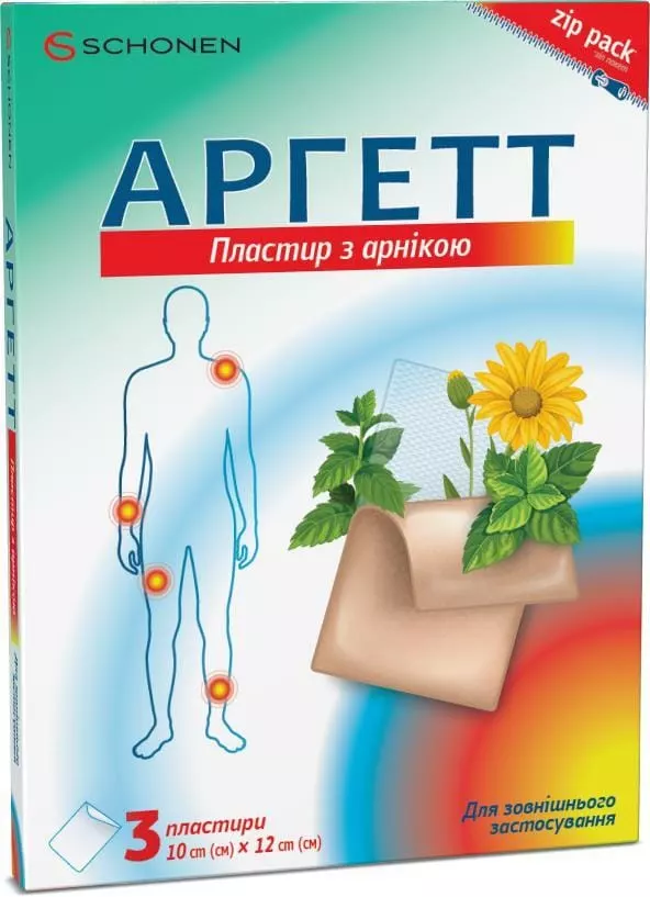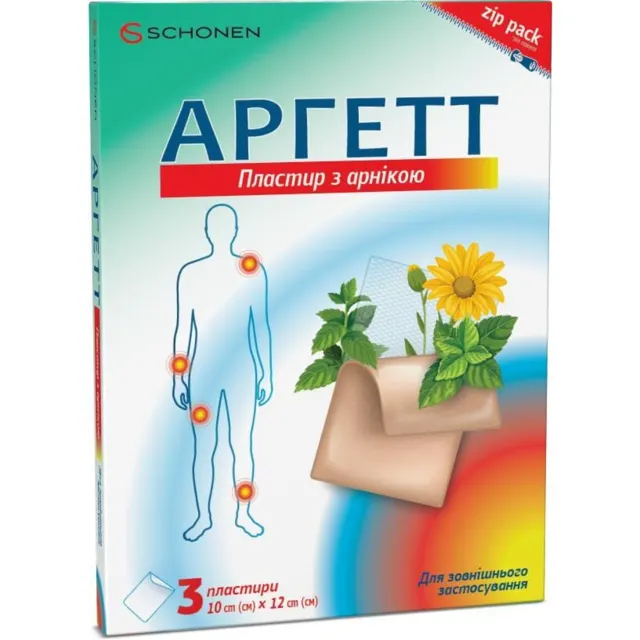 Аргетт пластир з арнікою рекомендований для догляду за шкірою при синцях, розтягненнях і незначних травмах.