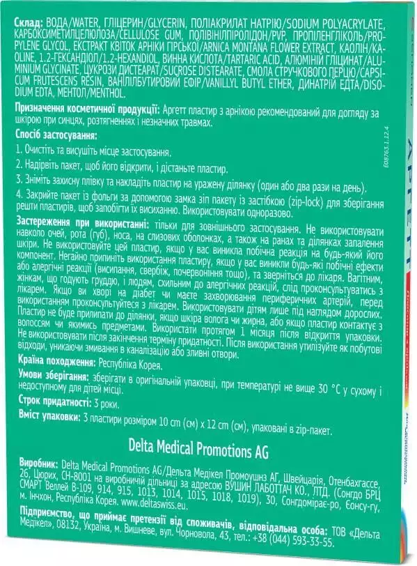 Аргетт пластырь с арникой размер 10 см*12 см №3, Delta Medical Promotions