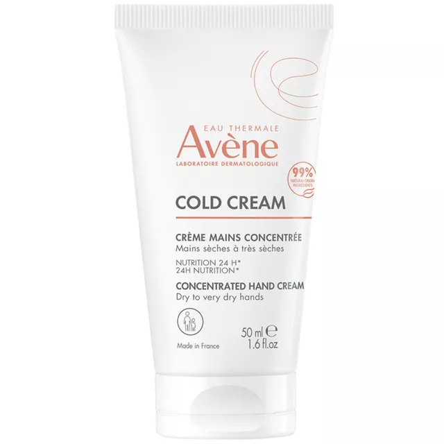 Протестований при надзвичайно низьких температурах, цей поживний крем для рук з обволікуючою текстурою та легким ароматом робить руки м’якими, не жирними та не липкими. Завдяки Eau Thermale Avène Cold Cream, традиційній суміші інгредієнтів із Французької фармакопеї, цей крем живить, заспокоює та захищає від холоду та сухості. Багата текстура забезпечує 24-годинне* зволоження та забезпечує поступове вивільнення активних інгредієнтів для легкого нанесення та швидкого поглинання.
