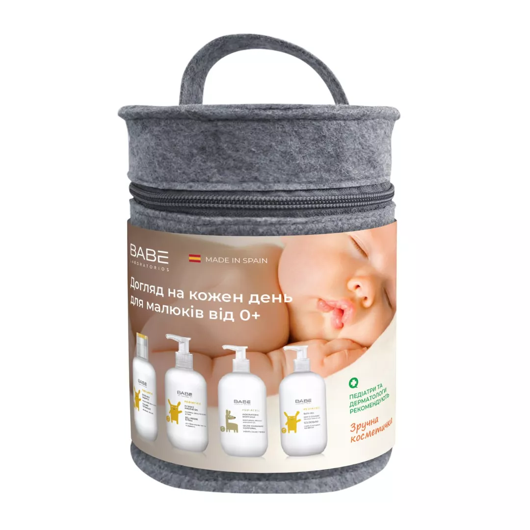 дитячий набір для щоденного догляду – поєднання високоефетивних та безпесних засобів для очищення та догляду за ніжною дитячою шкірою та волоссям від іспанського бренду дерматологічної косметики Babe Laboratorios.