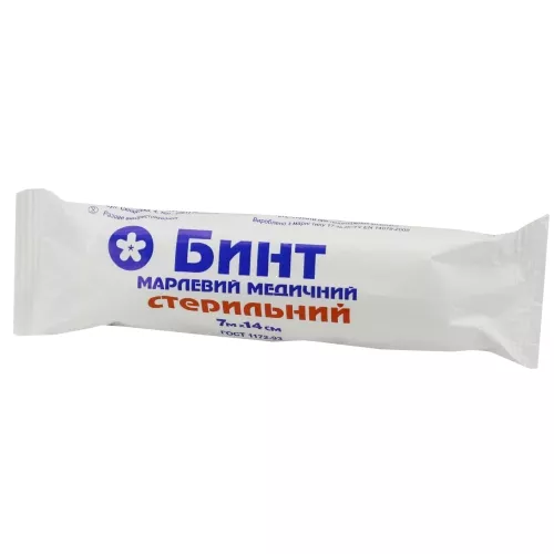 Бинт марлевый медицинский стерильный Лубныфарм размер 7 м*14 см, Лубныфарм