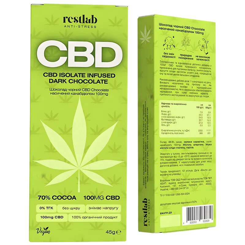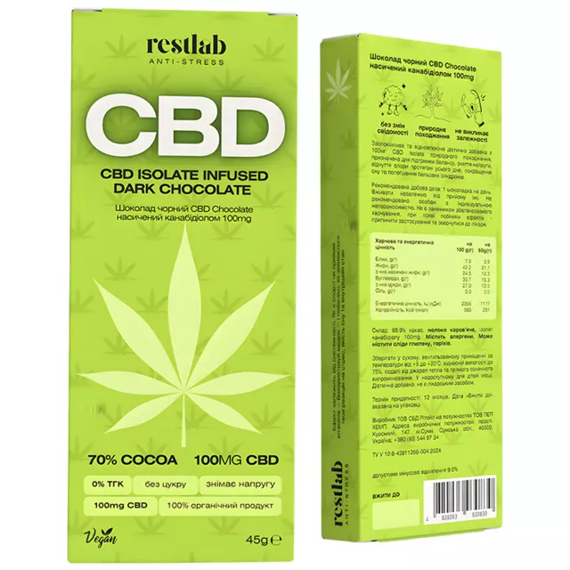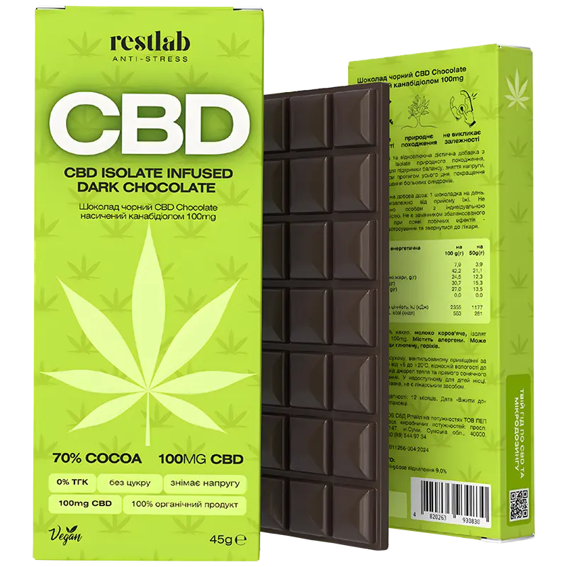 -69,9% какао, молоко коров'яче, Ізолят канабідіолу (CBD)1000 мг