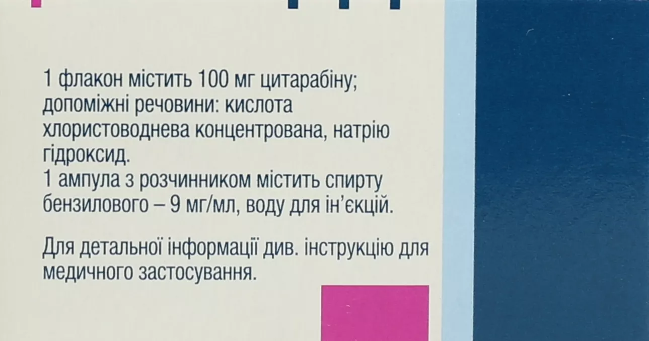 1 флакон містить 100 мг цитарабіну;