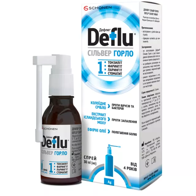 Застереження:– не застосовувати Дефлю® Сільвер Горло у разі пошкодження флакона або після закінчення терміну придатності;