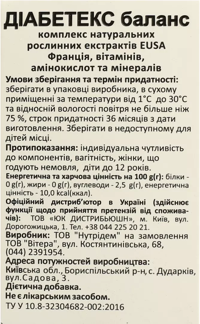 Диабетекс баланс таблетки 500 мг №60, Актилайф Нутришн ООО (Украина, Ворзель)
