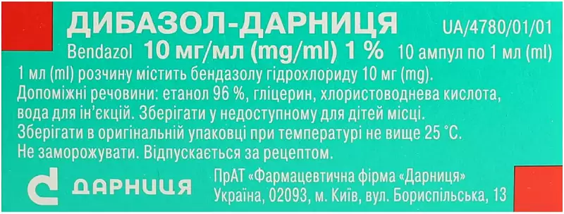 Дибазол-Дарниця у формі ін’єкцій є допоміжним засобом, який використовують при артеріальній гіпертензії за умови чутливості до інших гіпотензивних засобів. При лікуванні артеріальної гіпертензії рекомендується поєднувати з іншими гіпотензивними препаратами.
