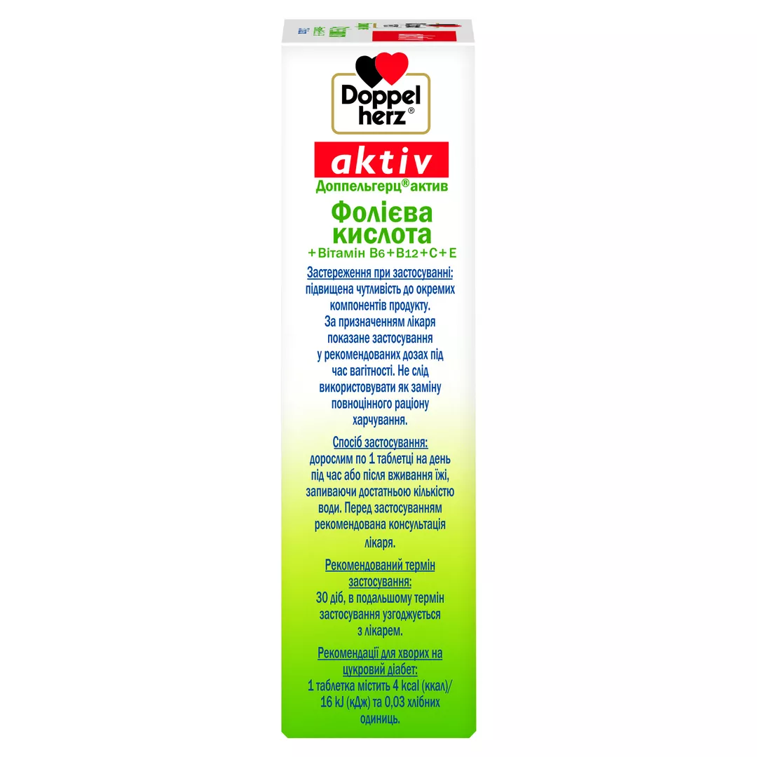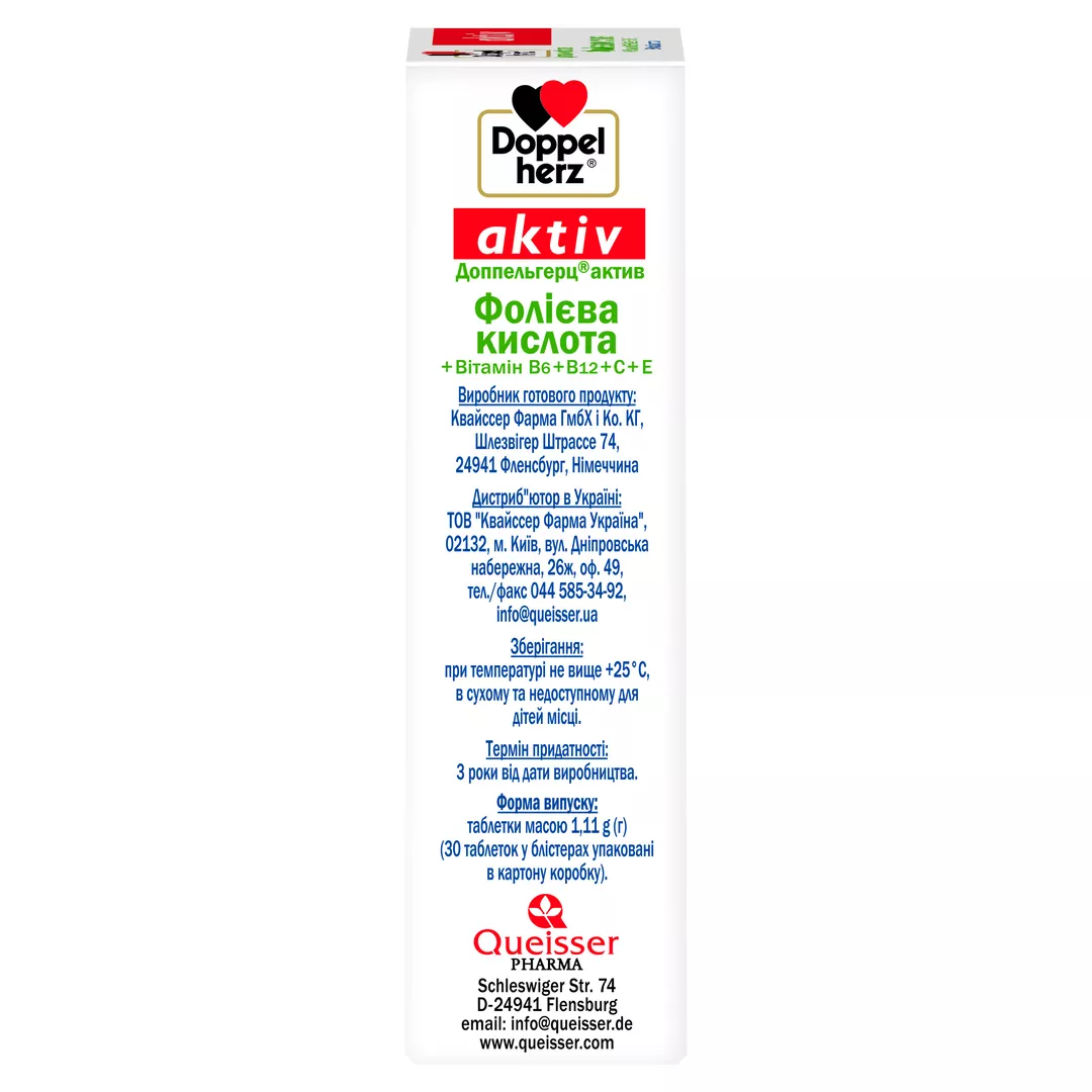 Доппельгерц Актив Фолиевая кислота+ витамины B6+ B12+ C+ E таблетки покрытые оболочкой №30, Queisser Pharma