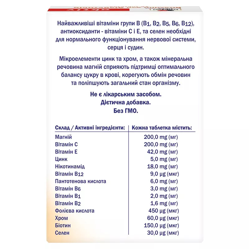 Важлива Інформація: приймаючи даний комплекс, що доповнює підвищену потребу в вітамінах, мікроелементах та мінеральних речовинах у хворих на цукровий діабет, необхідно пам’ятати, що це не замінює основну програму лікування цукрового діабету, а тільки доповнює її. Також обов’язково треба виконувати основні правила харчування для хворих на цукровий діабет у поєднанні з належним способом життя, достатньою фізичною активністю, контролем за вагою та прийомом лікарських засобів, рекомендованих лікарем.