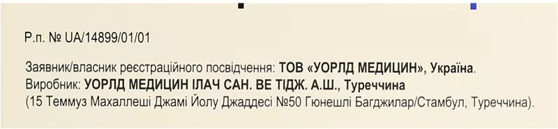 Виробник.УОРЛД МЕДИЦИН ІЛАЧ САН. ВЕ ТІДЖ. A.Ш., Туреччина/