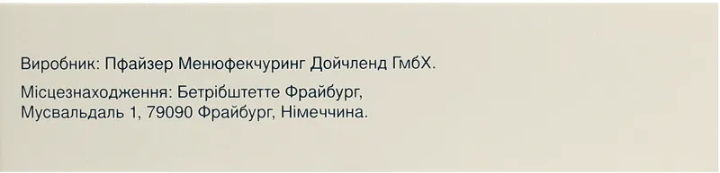 Категорія відпуску. За рецептом. Виробник.Пфайзер Менюфекчуринг Дойчленд ГмбХ / Pfizer Manufacturing Deutschland GmbH