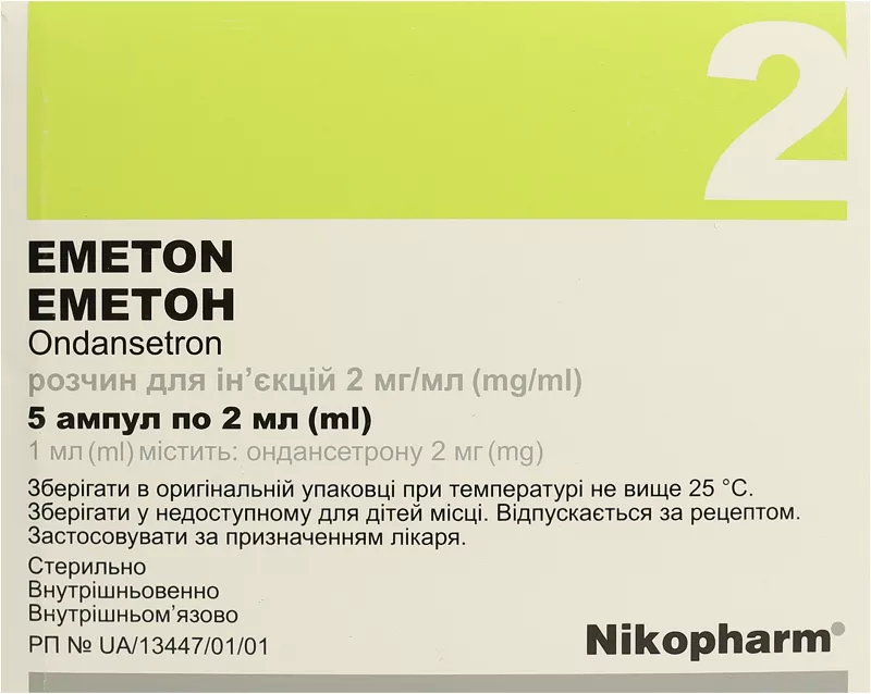 Для лечения послеоперационных тошноты и рвоты рекомендованная разовая доза Эметона составляет 4 мг в виде внутримышечной или медленной внутривенной инъекции.