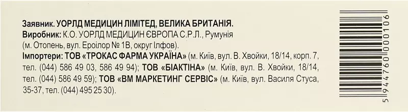 Сеть аптек «Бажаємо здоров'я» сотрудничает только с проверенными поставщиками. Препараты, поступающие в наши аптеки, проходят все соответствующие этапы реализации лекарственных средств. Больше информации.