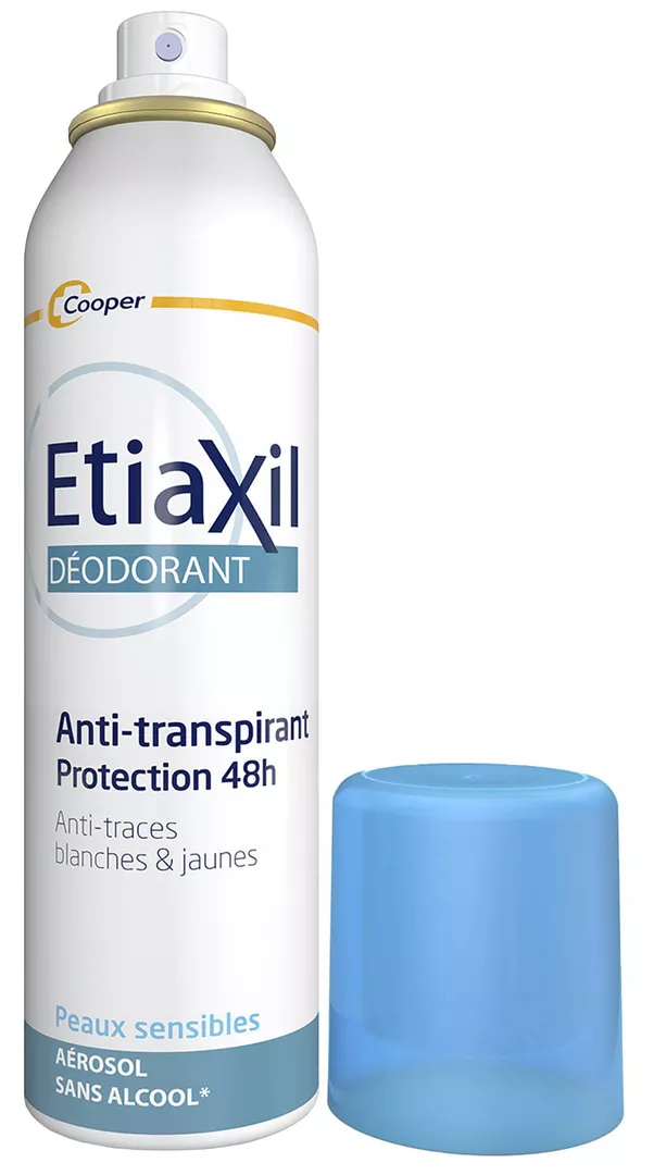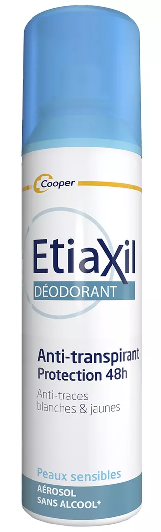 Антиперспірант-дезодорант Etiaxil «Захист 48 годин» у формі аерозолю розроблений для щоденного використання з метою регулювання помірного потовиділення пахв. Забезпечує захист від поту та неприємного запаху протягом 48 годин, запобігає появі жовтих плям та білих слідів на одязі. Стриманий та легкий аромат забезпечує відчуття свіжості протягом дня.